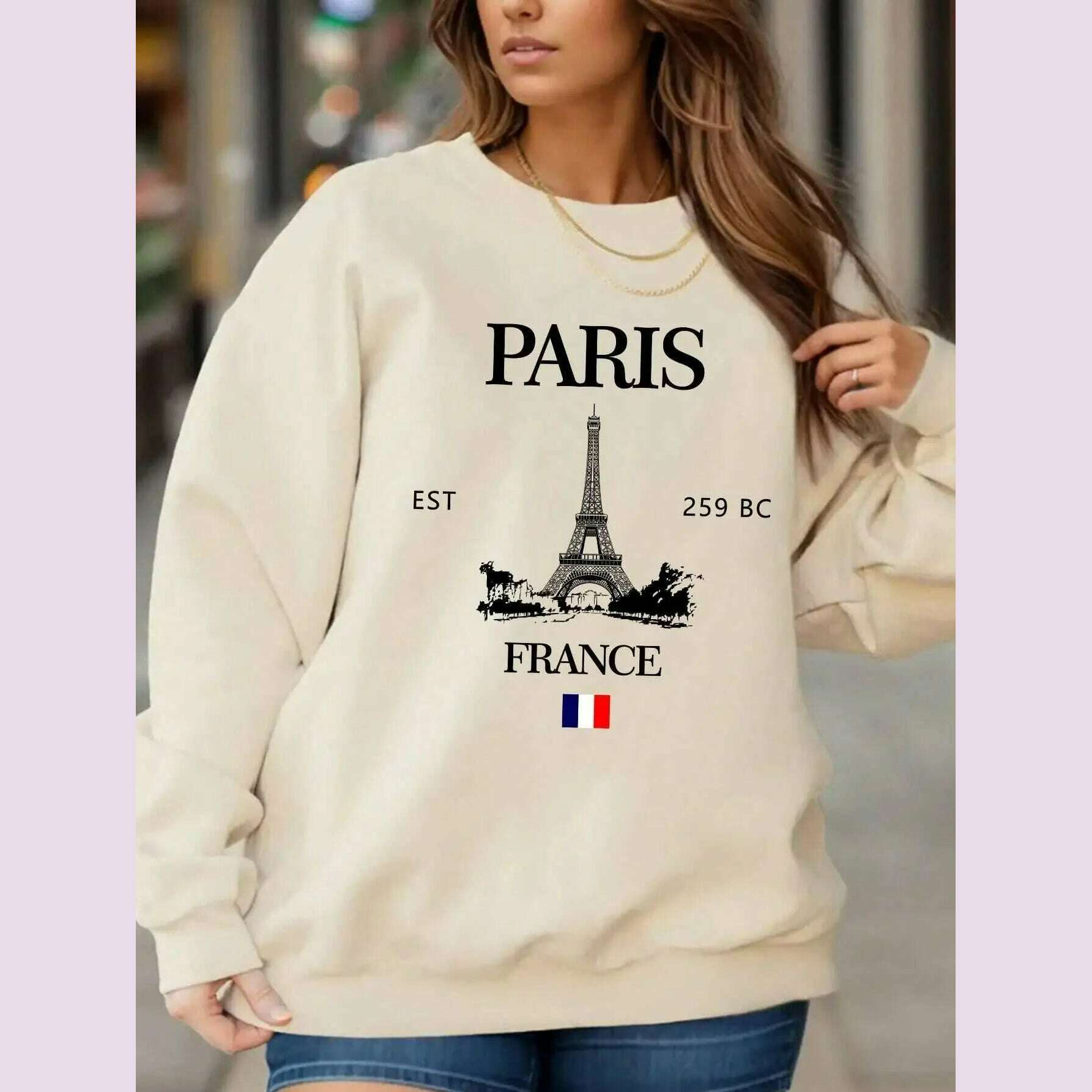 Casual Women Sweatshirts Paris France Eiffel Tower Printing Hoodies Comfortable All-Math Pullover Crewneck Loose Female Tops
