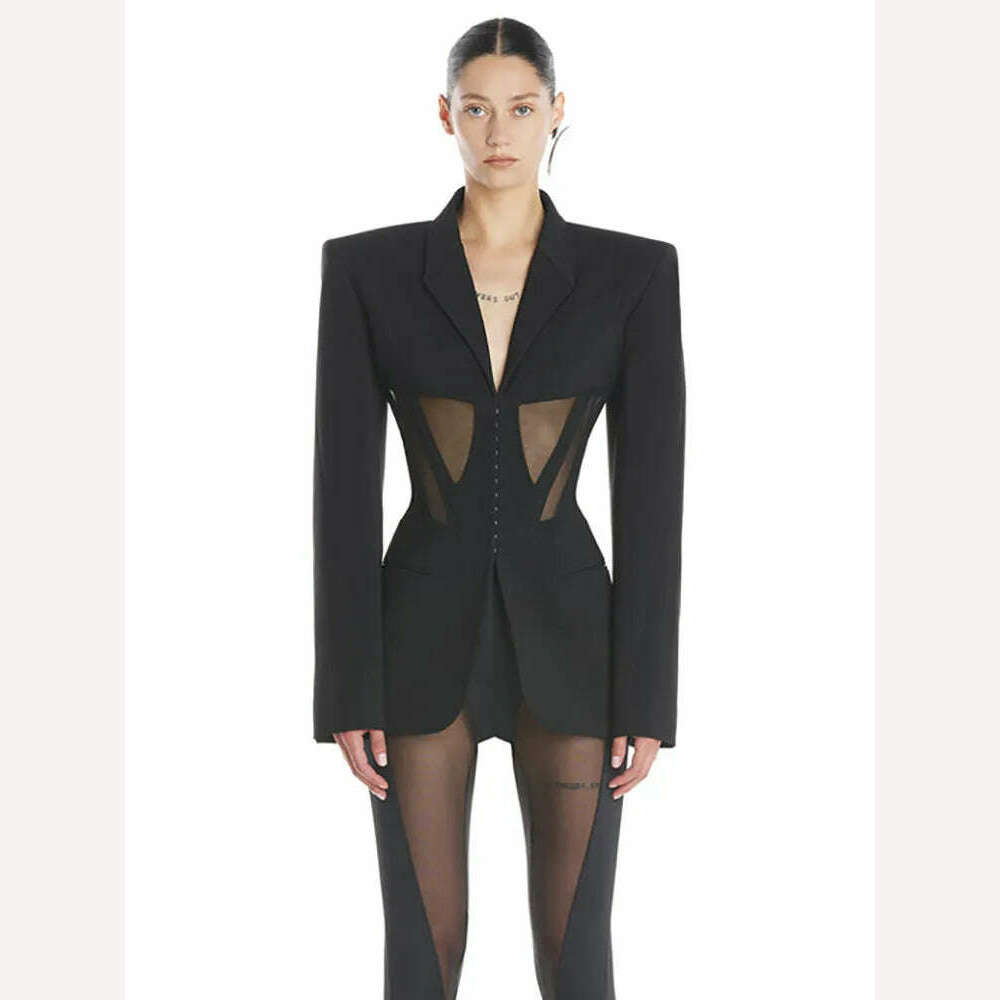 DEAT 2023 Summer Women's Blazer New Fashion Neothed Loose Single Breatsed Long Sleeve Spliced Mesh Elegant Suit jackets WV10000S - KIMLUD