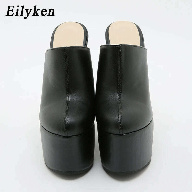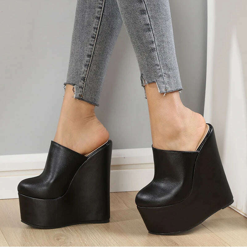 Eilyken Platform Wedge Round Head Pumps Slippers Summer Woman Sexy Super High Sandal Shoes Black 35-42