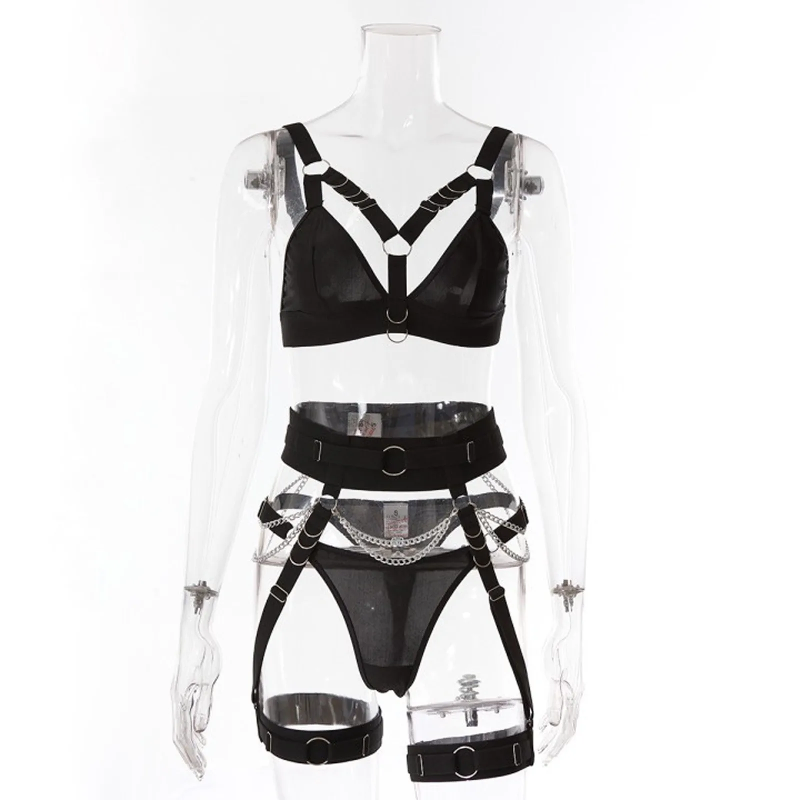 Ladies Erotic Lingerie Sexy Split Three Point Chain Strap Waistband Erotic Suit