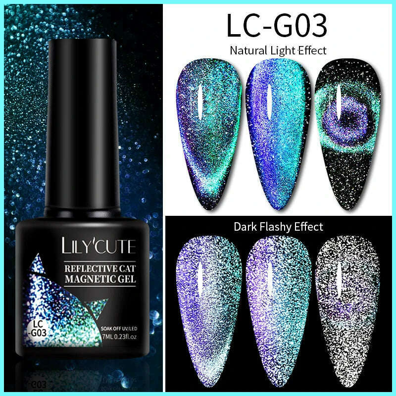 LILYCUTE 7ML Sparkling Glitter Rainbow Cat Magnetic Gel Nail Polish 9D Colorful Semi Permanent Soak Off Nail Art UV Gel Varnish