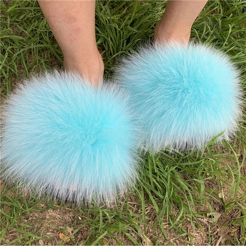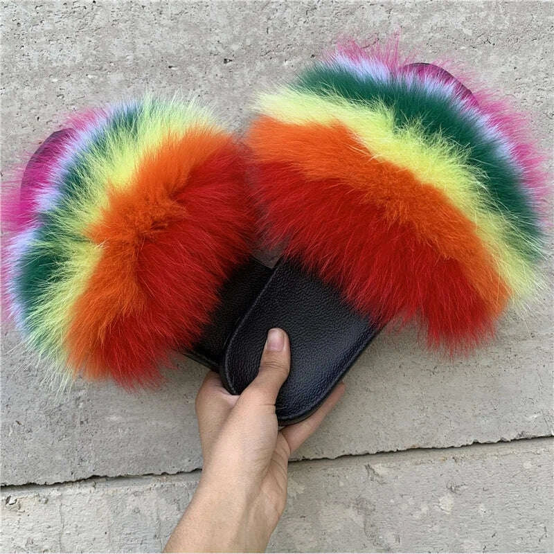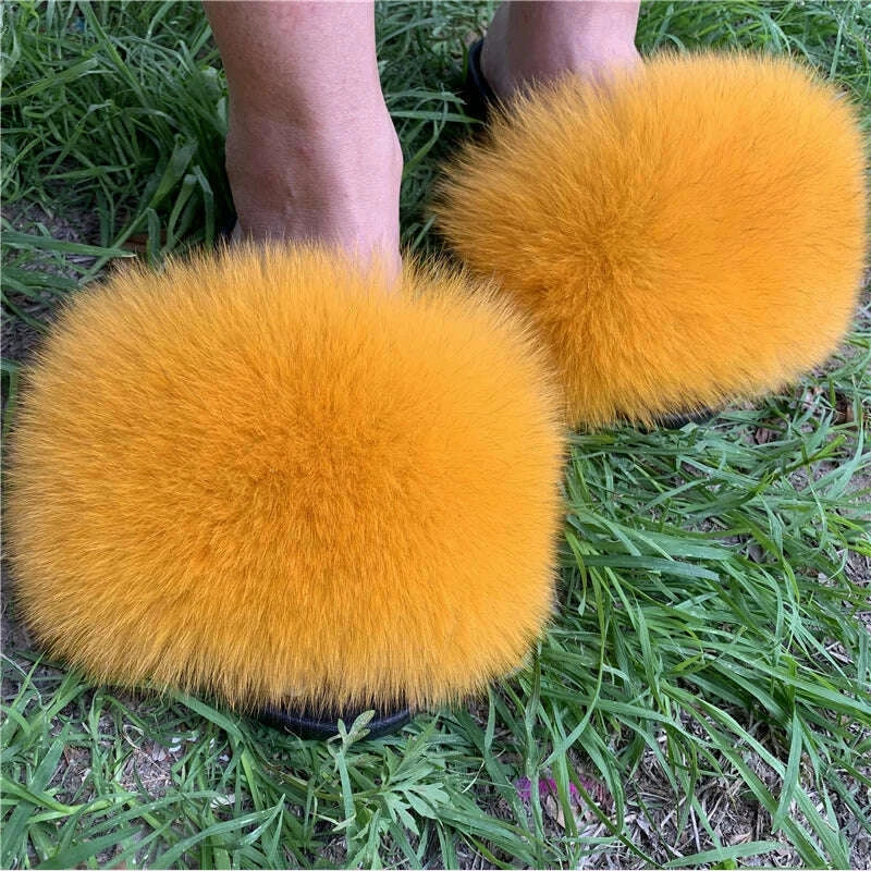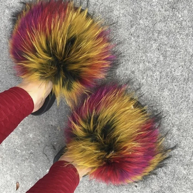 New Arrival Girl Luxury Fluffy Fur Slippers Ladies Indoor Warm Furry Fur Flip Flops Women Amazing Plush Fur Slides Wholesale Hot