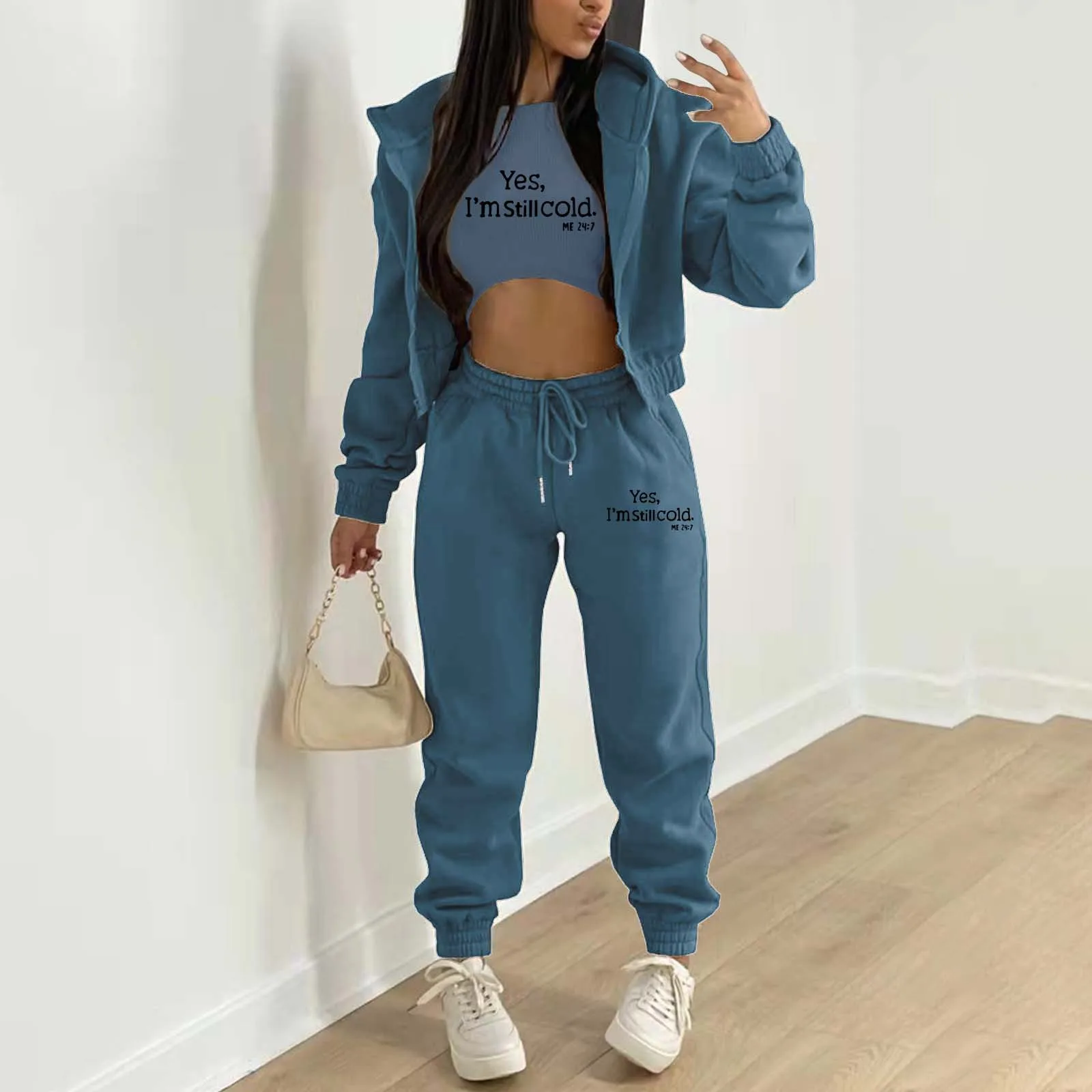 Sets Outifits 2024 New Letter Print Hooded Pocket Design for Set of Three Fashion Casual Pieces for Women Tracksuits Female