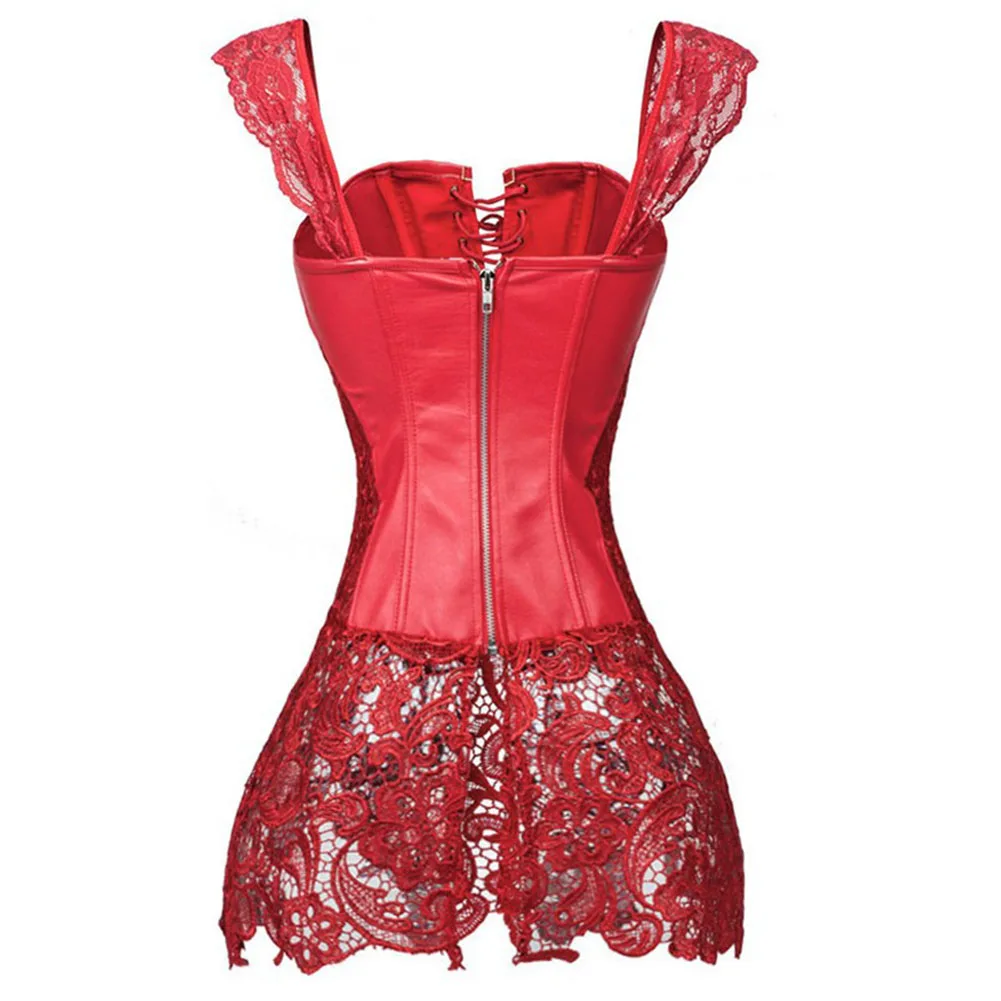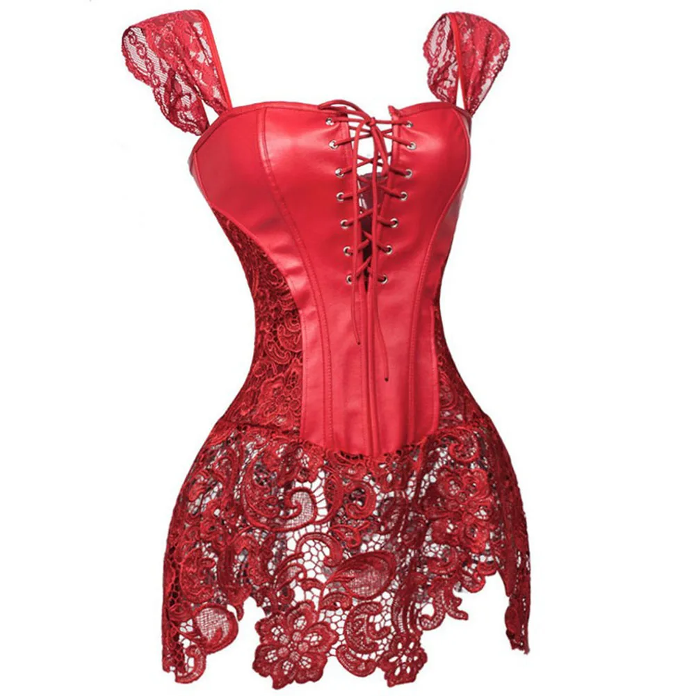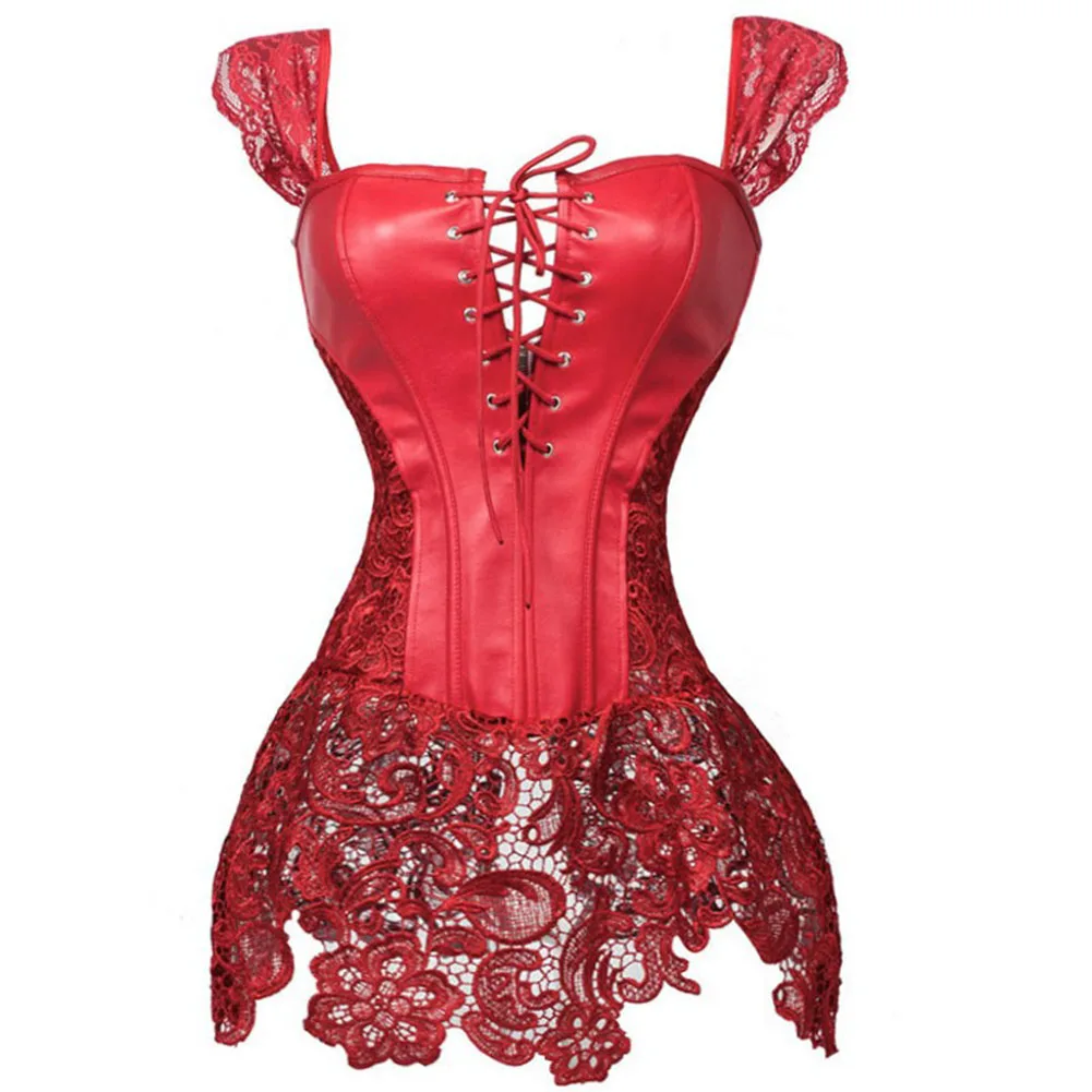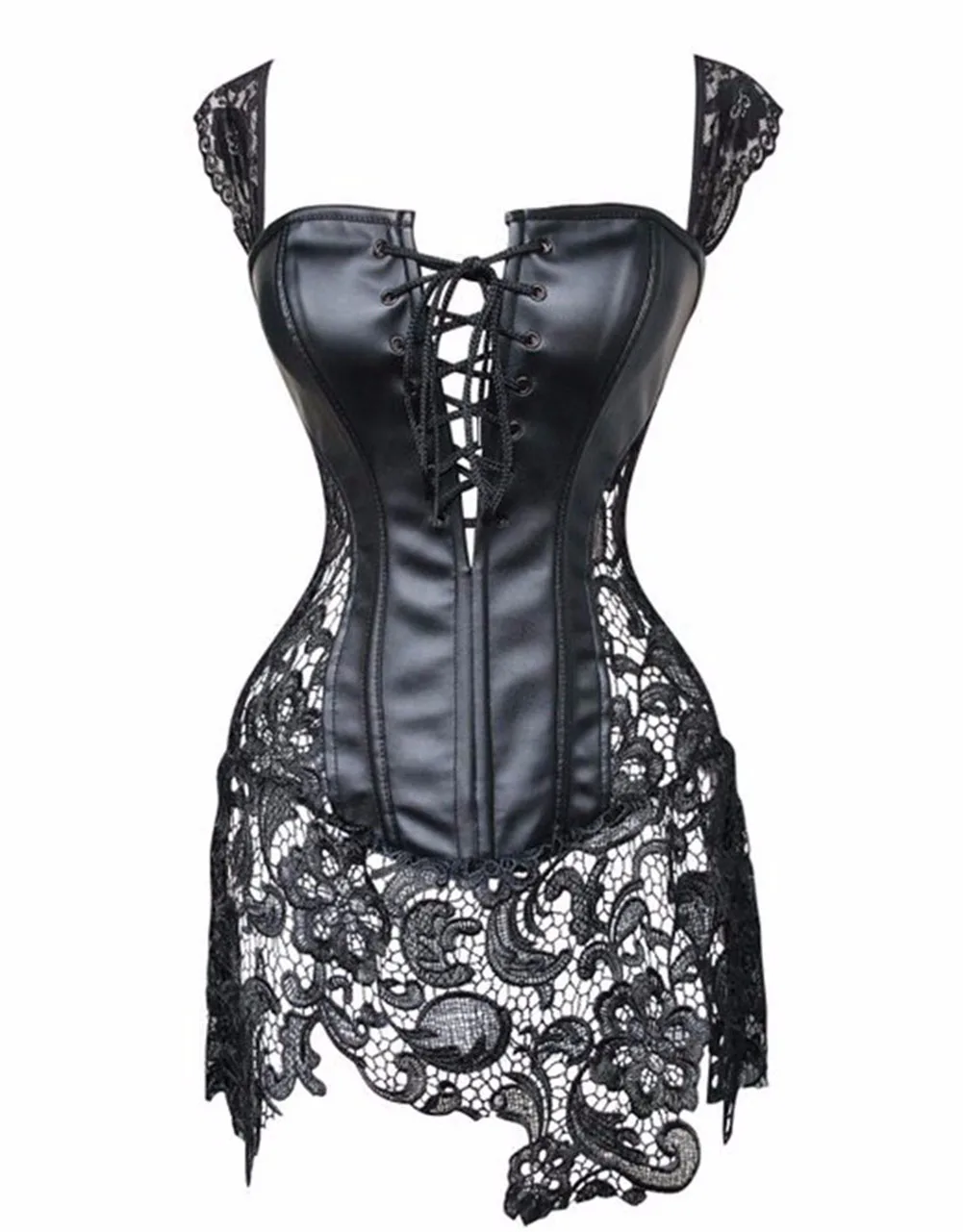 Sexy Burlesque Lingerie Gothic Faux Leather Steampunk Corset Plus Size Black Lace Bustier Overbust Corsage Korsett Corsets Top