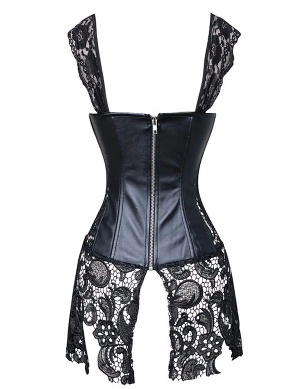 Name: Gothic Faux Leather Steampunk Corset Black Lace Shaperwear