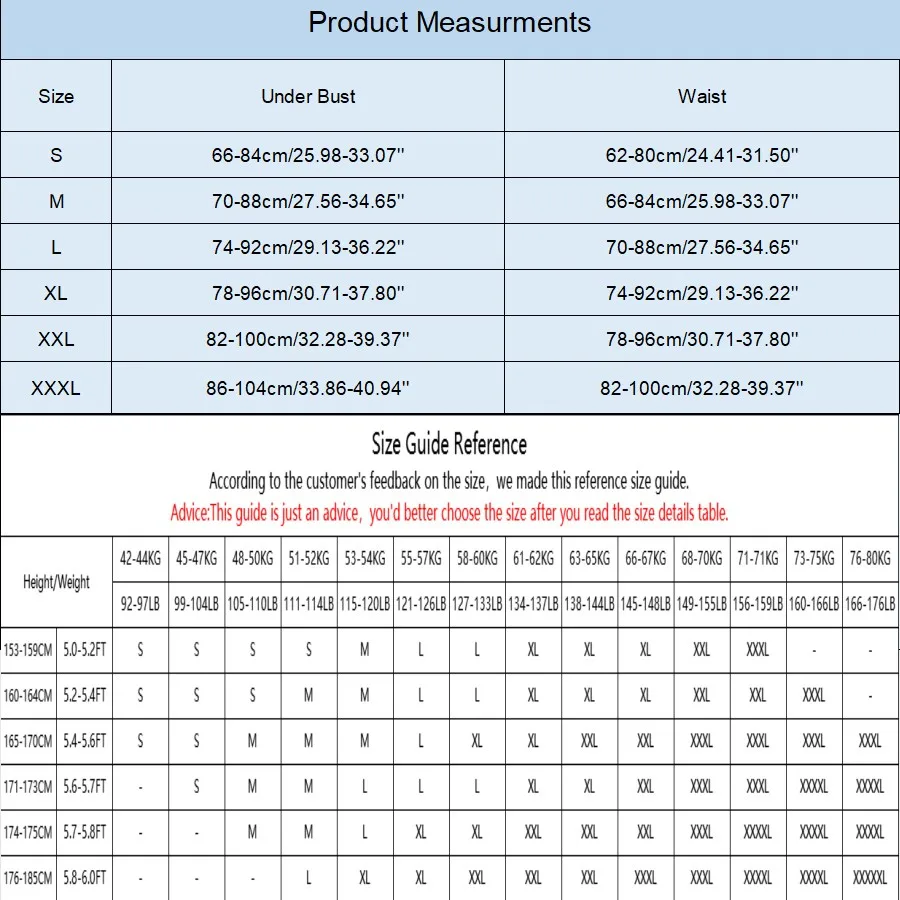 | Size:XXXL | Waist:82-100cm/32.28-39.37'' | Under Bust:86-104cm/33.86-40.94'' |