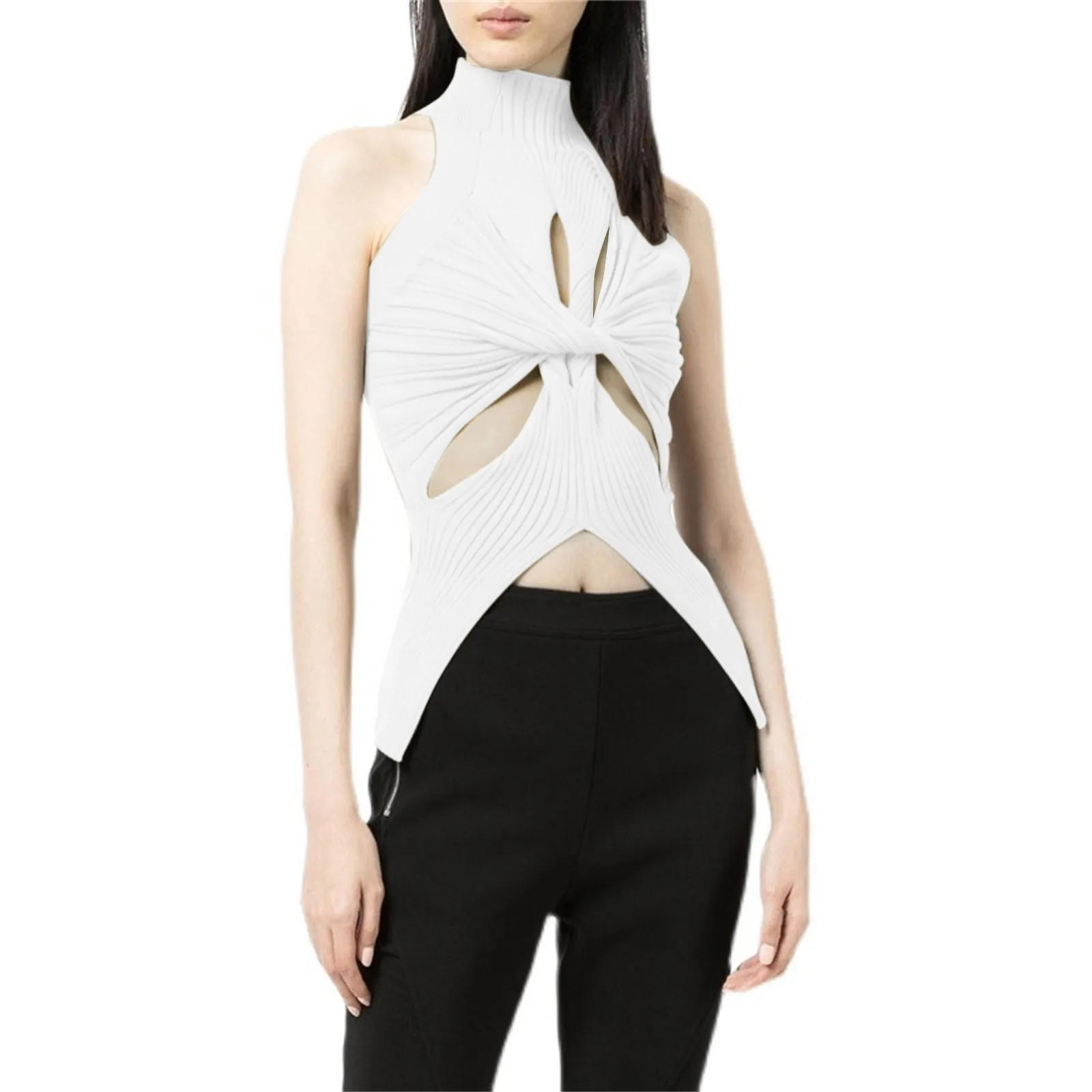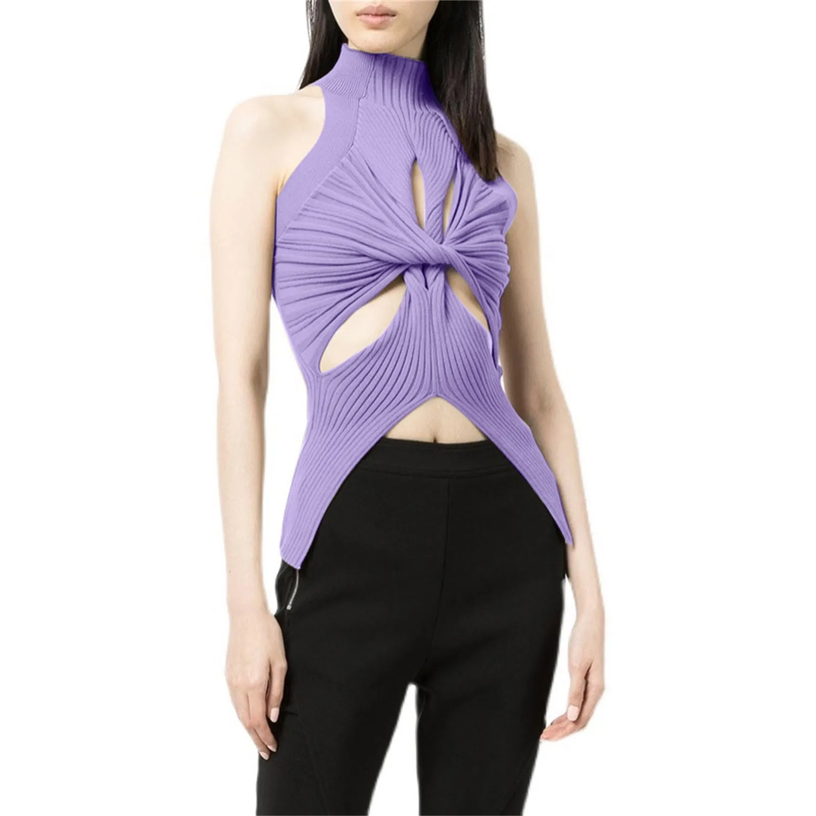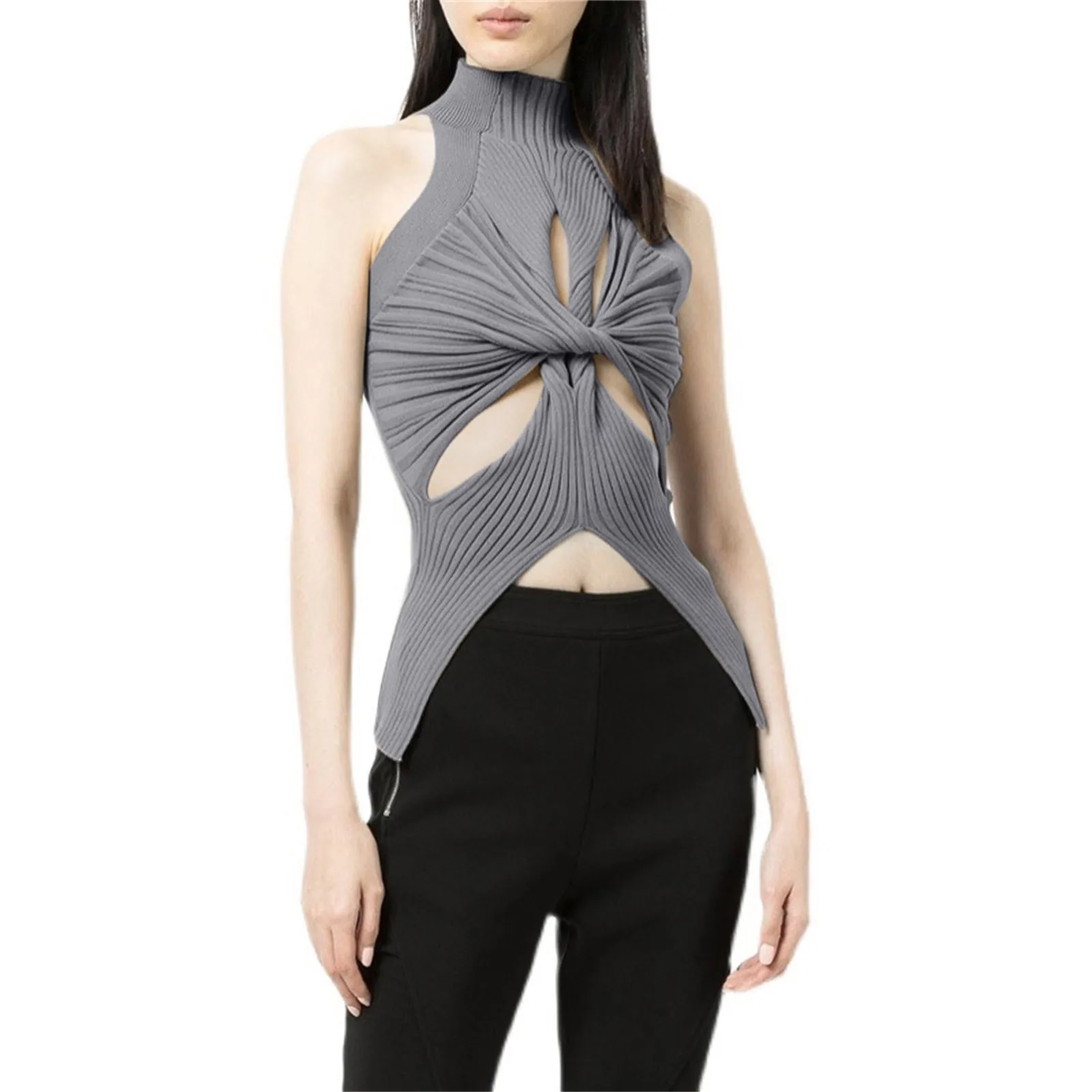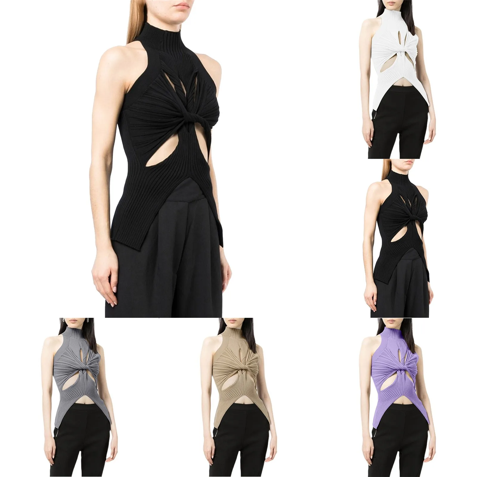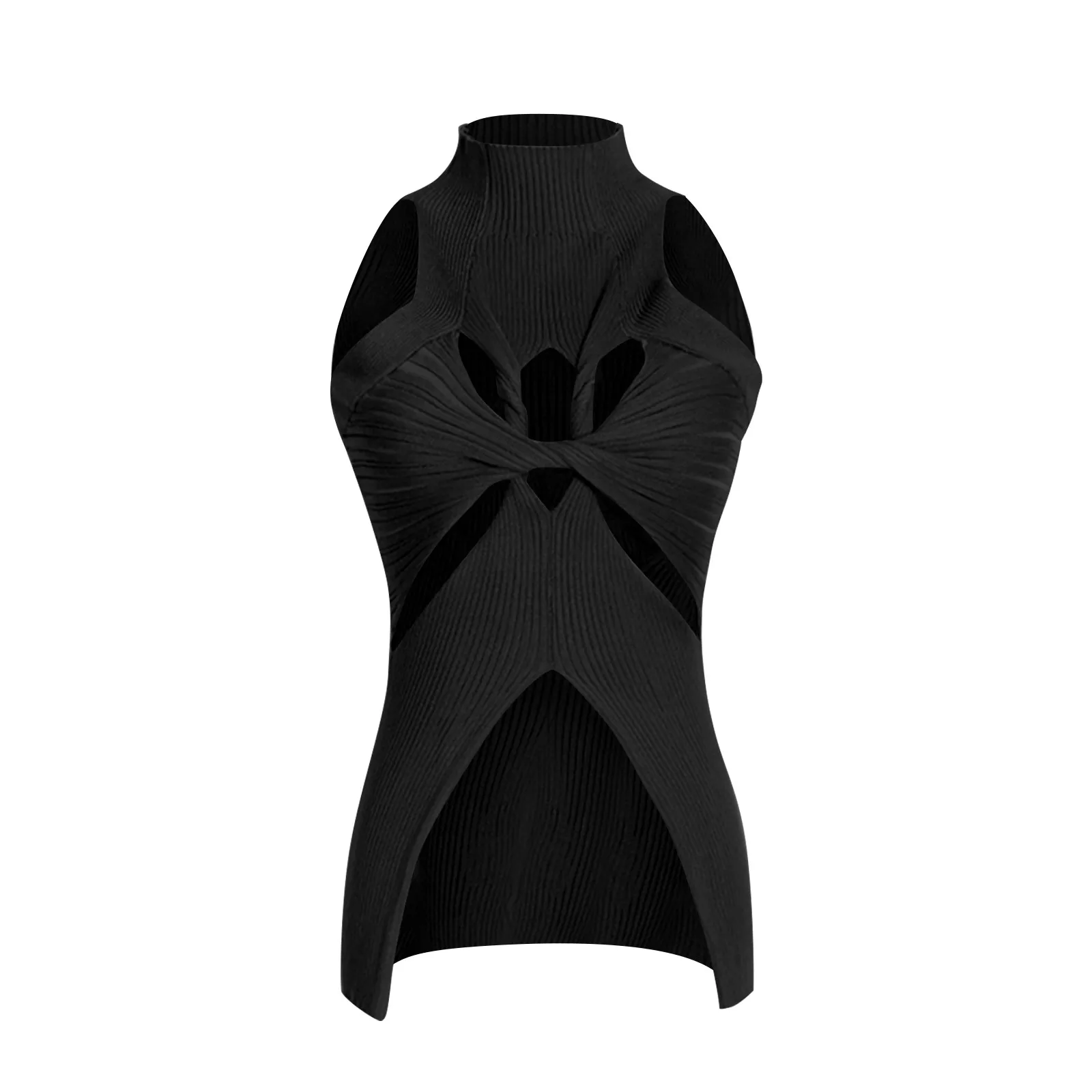 Sleeveless High Neck Cut Out Sweater Vest Knit Vests Women Fashion For Women Sexy Hollow Out Twist Front Knitted Tank Tops