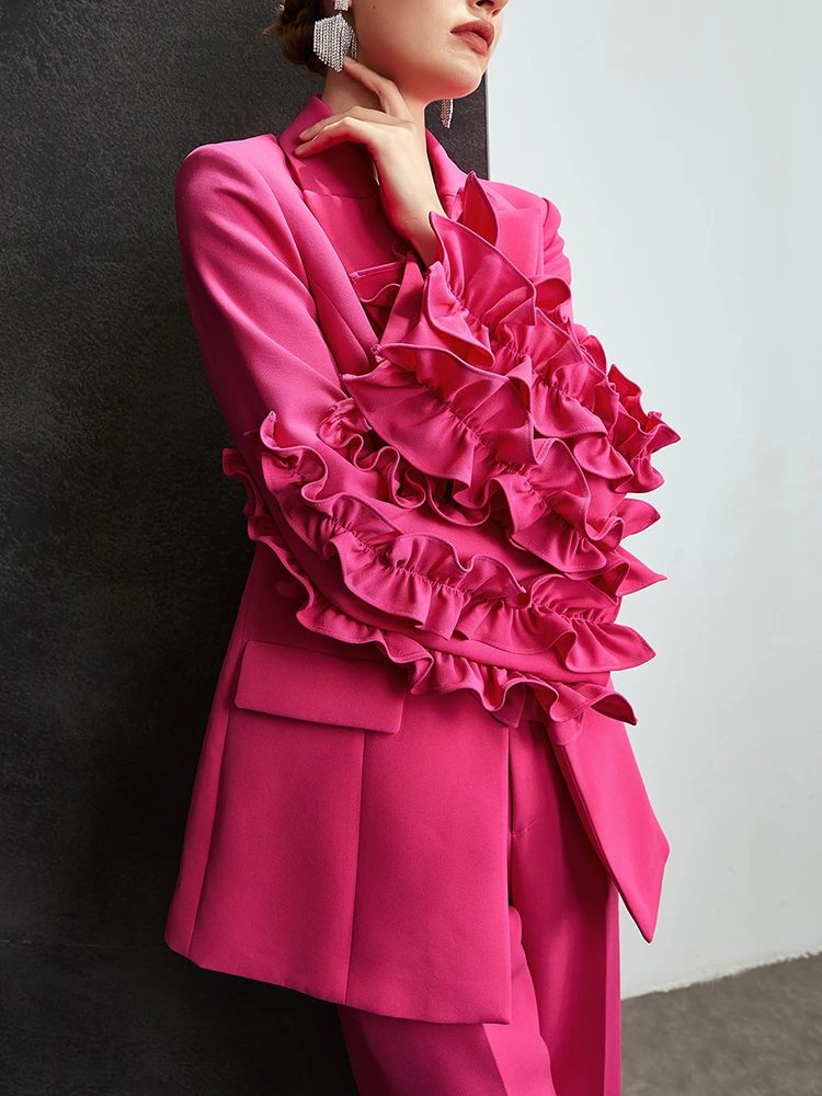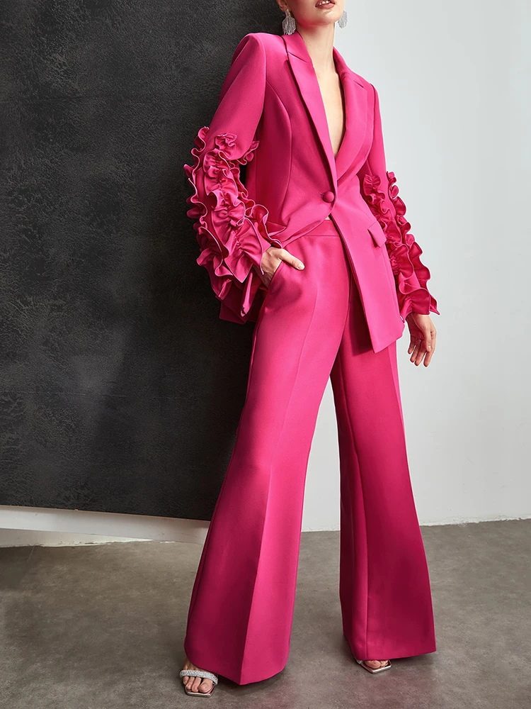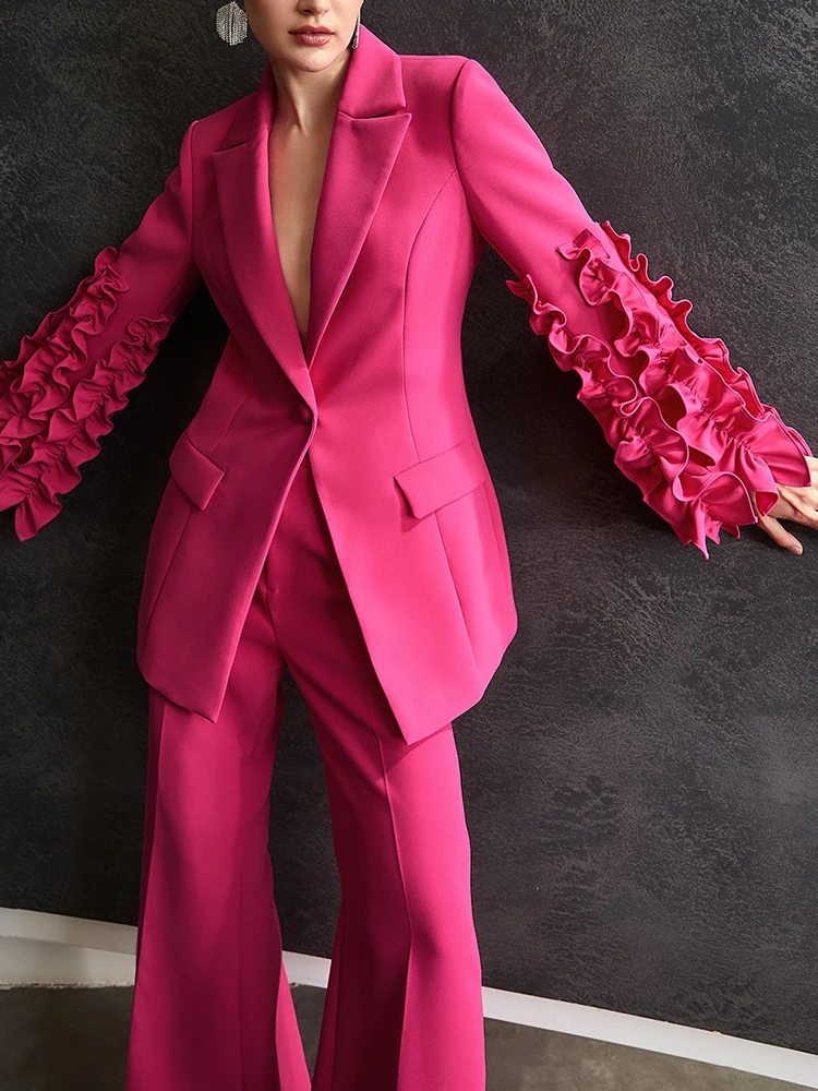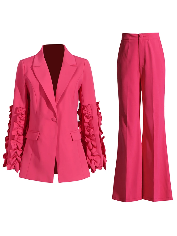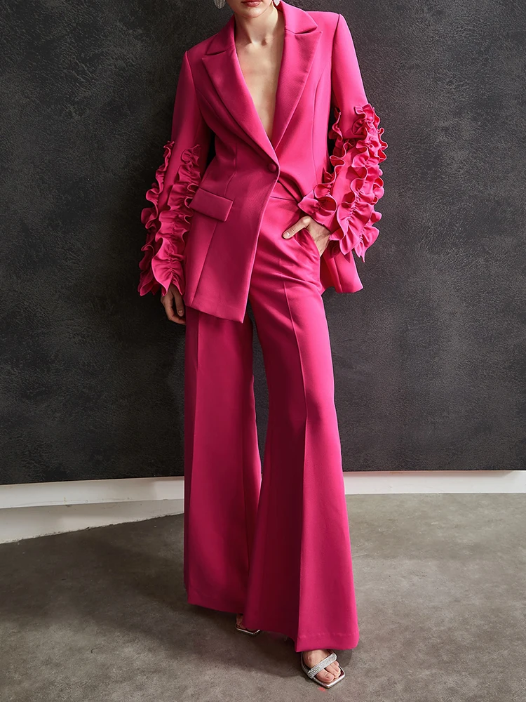 TWOTWINSTYLE Designer Two Piece Set For Women Notched Collar Long Sleeve Top High Waist Flare Pant Temperament Sets Female New