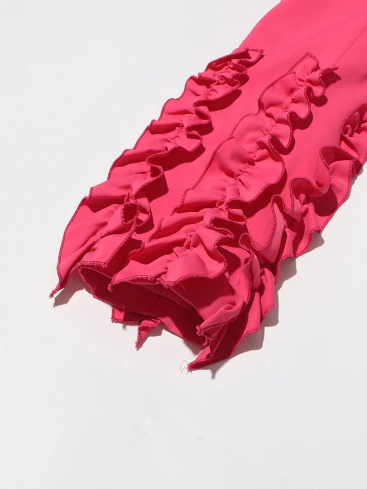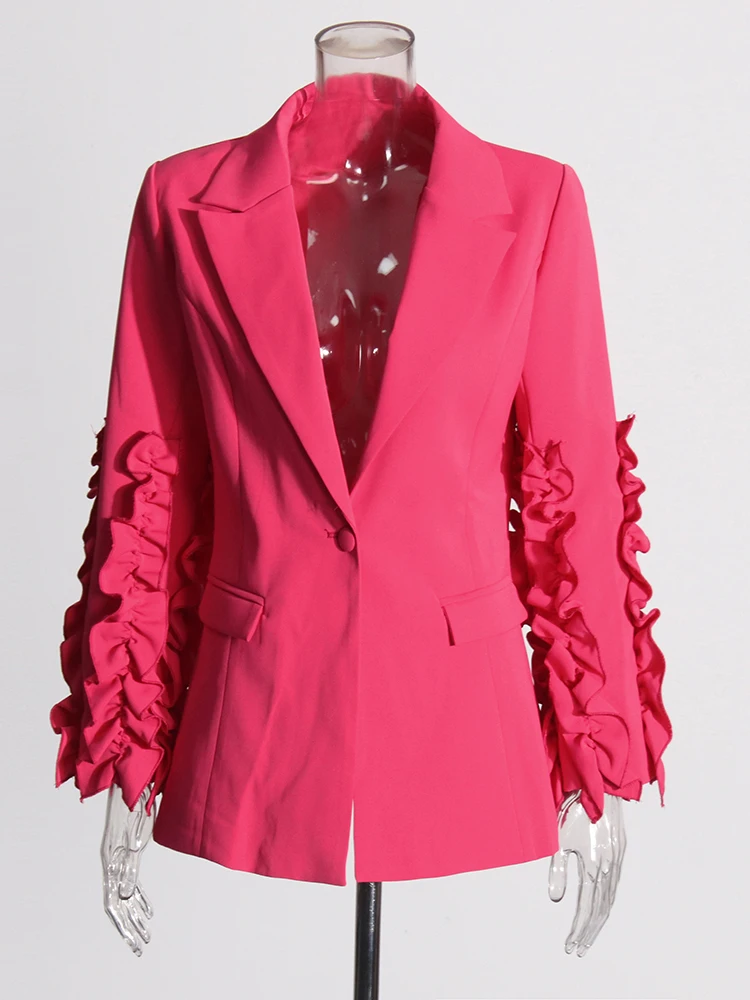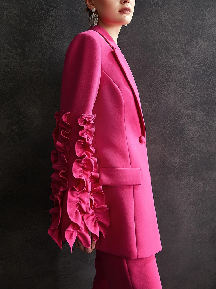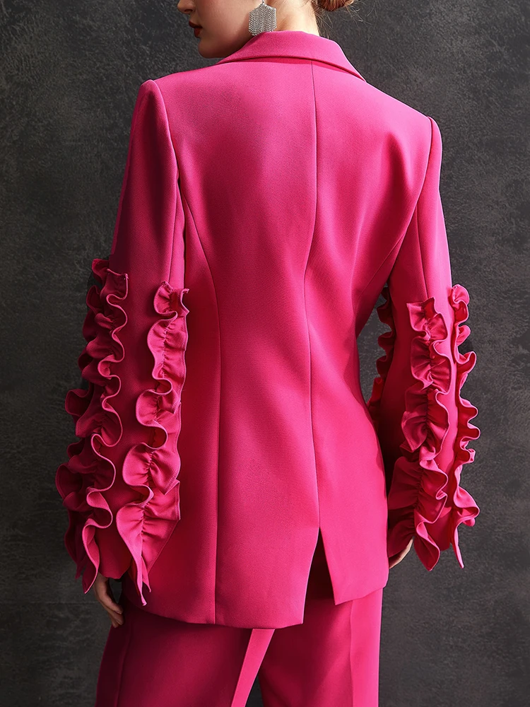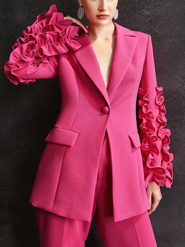 TWOTWINSTYLE Designer Two Piece Set For Women Notched Collar Long Sleeve Top High Waist Flare Pant Temperament Sets Female New