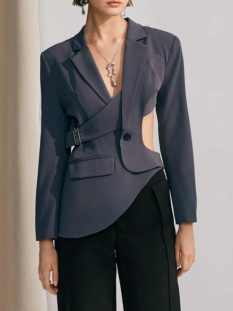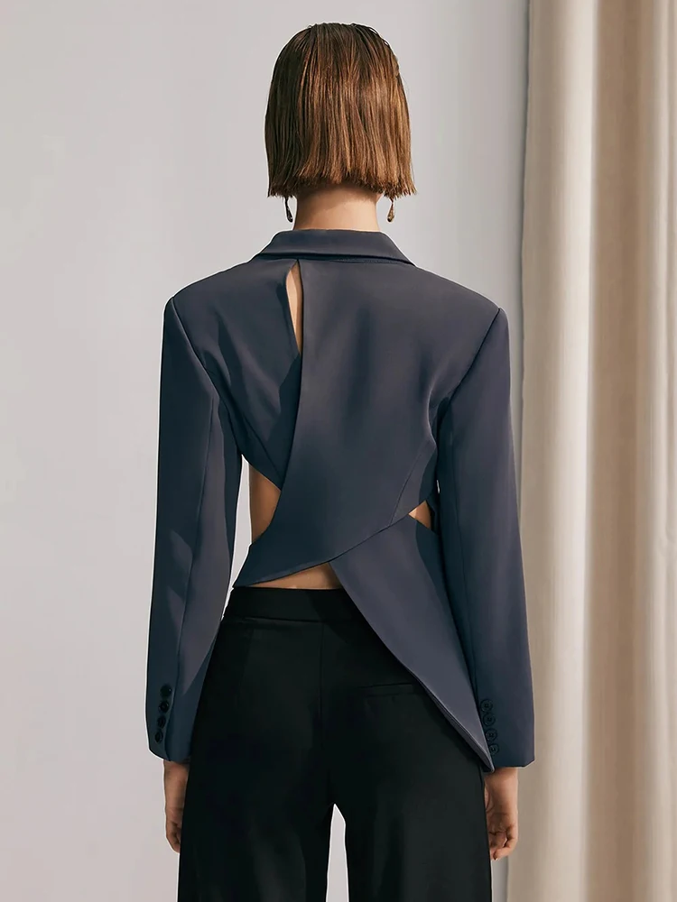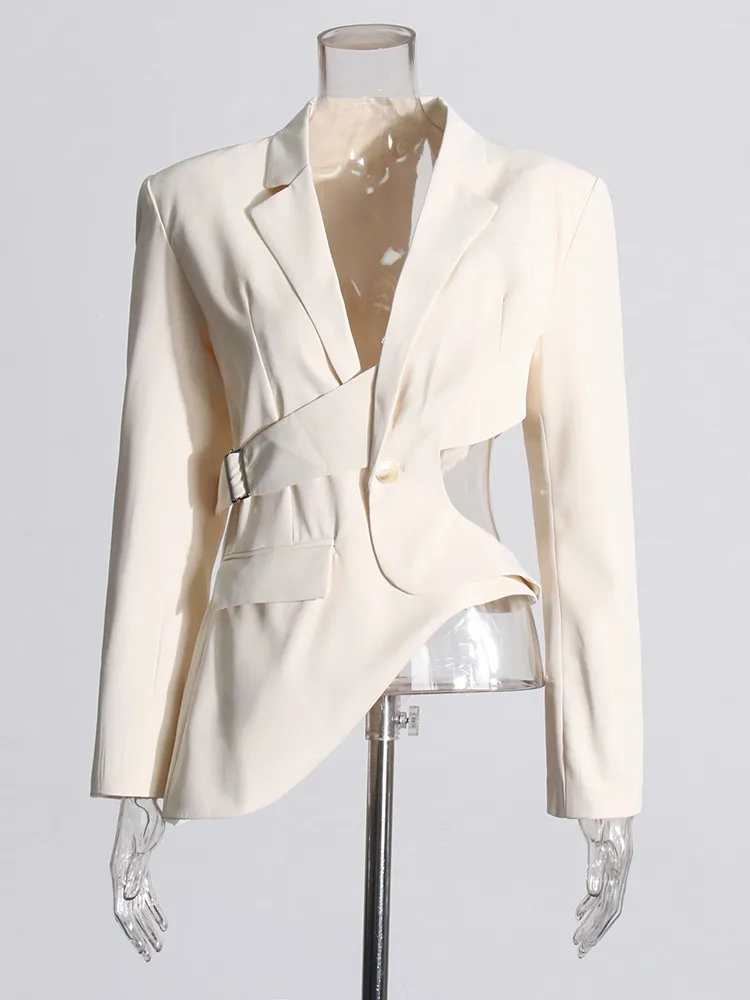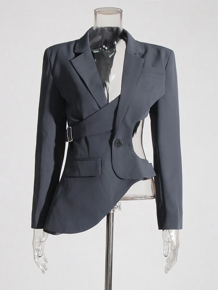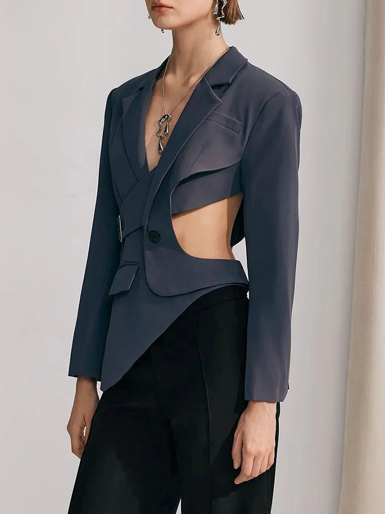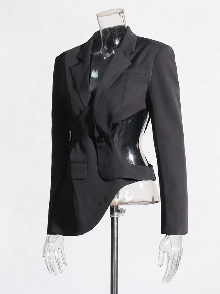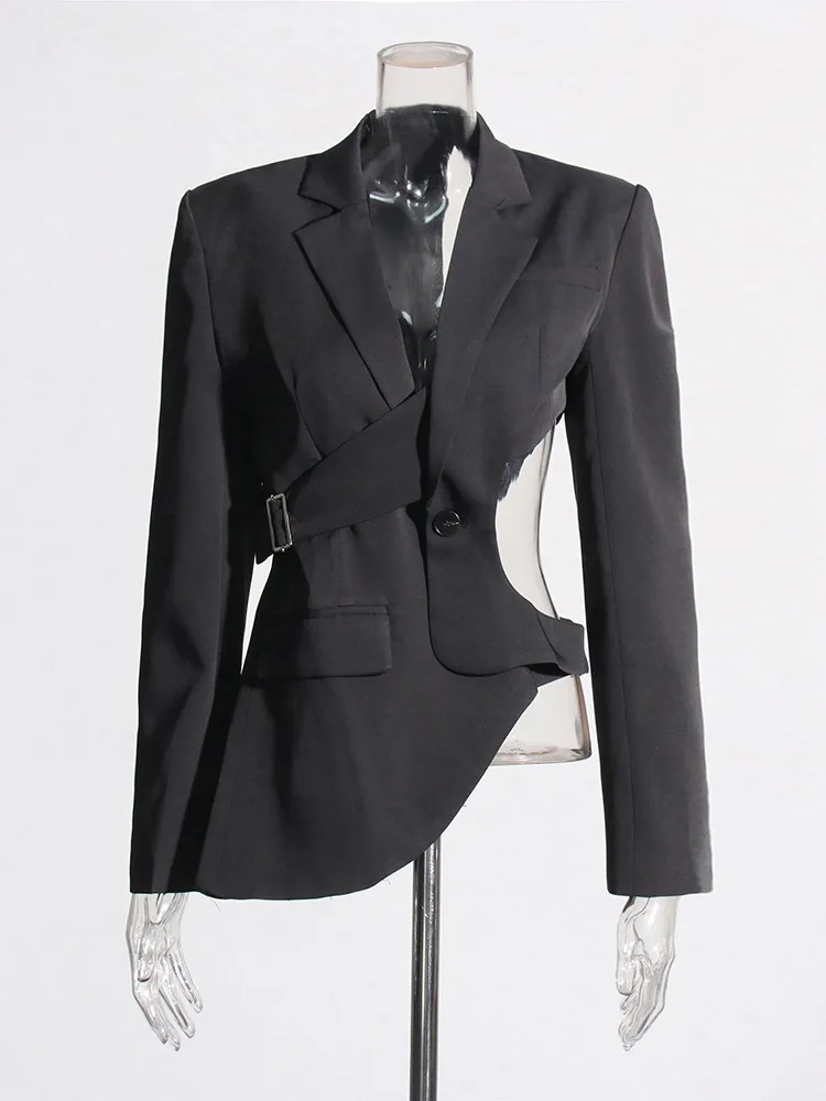 VGH Irregular Hollow Out Elegant Blazer For Women Notched Collar Long Sleeve Spliced Button Temperament Slimming Blazers Female