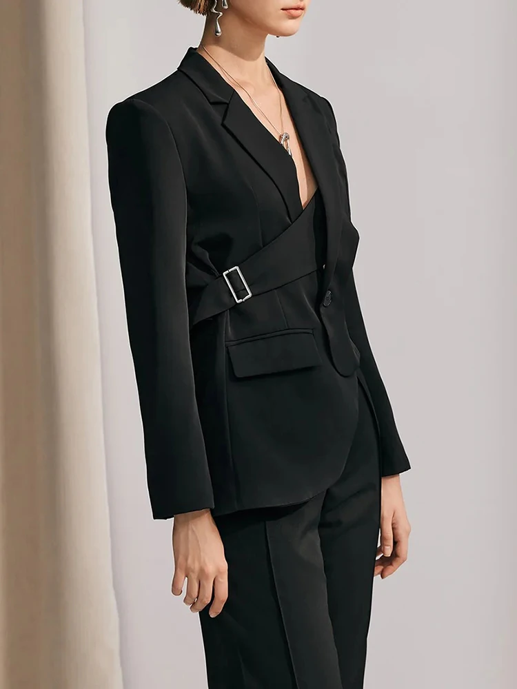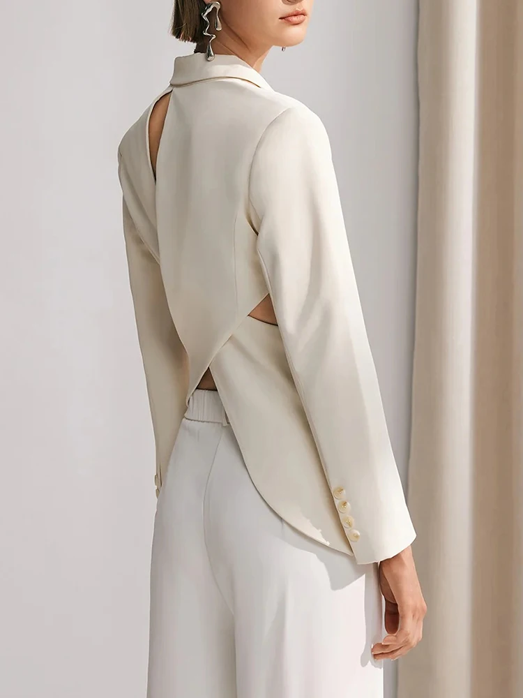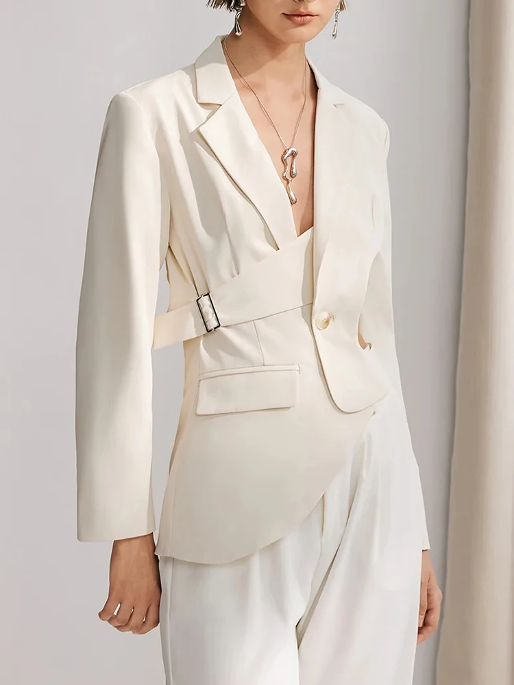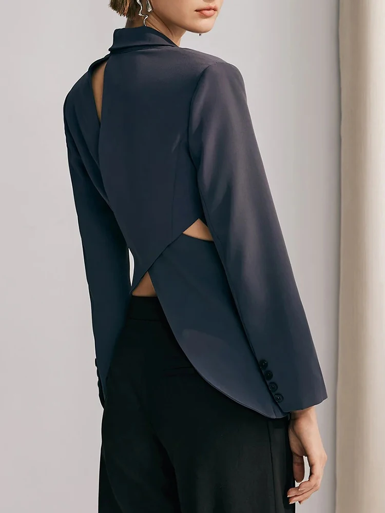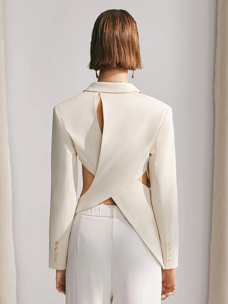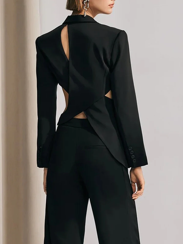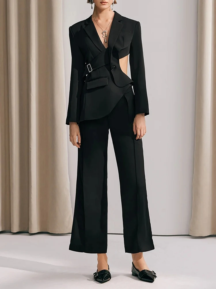 VGH Irregular Hollow Out Elegant Blazer For Women Notched Collar Long Sleeve Spliced Button Temperament Slimming Blazers Female
