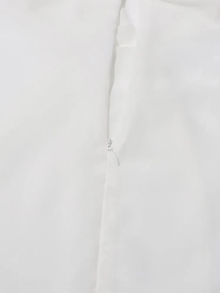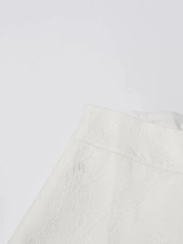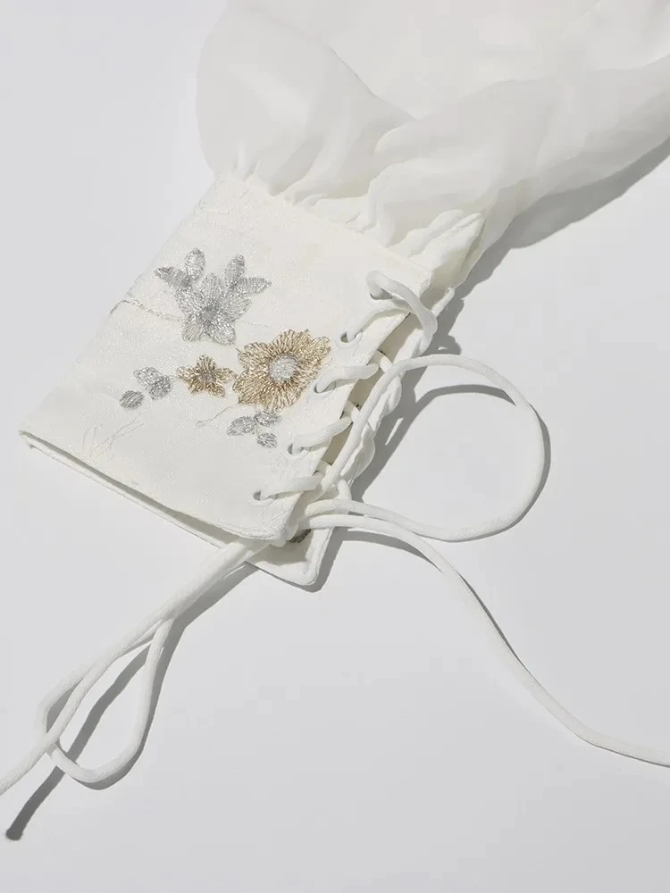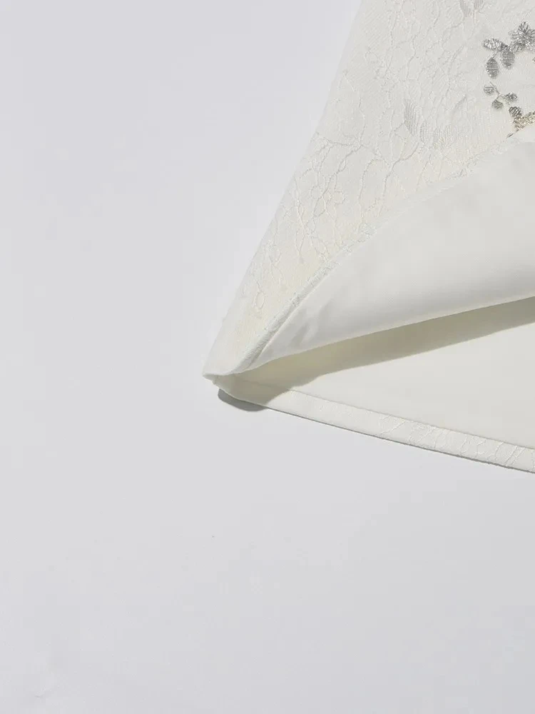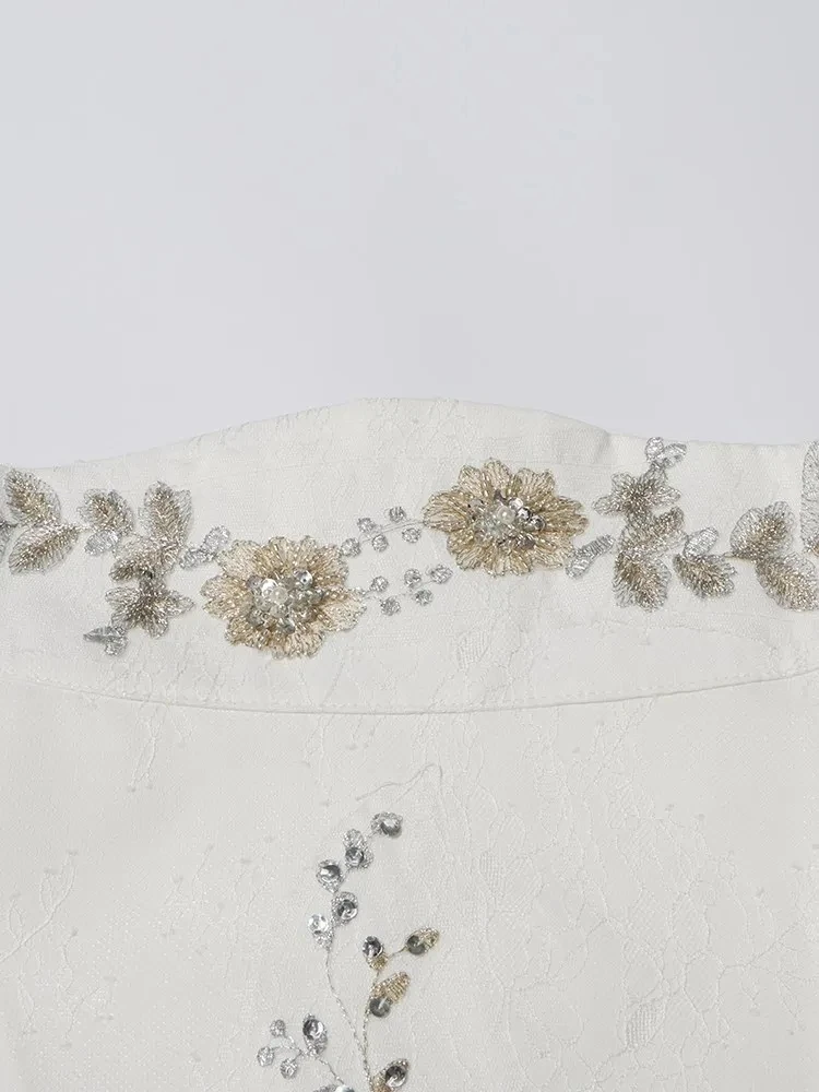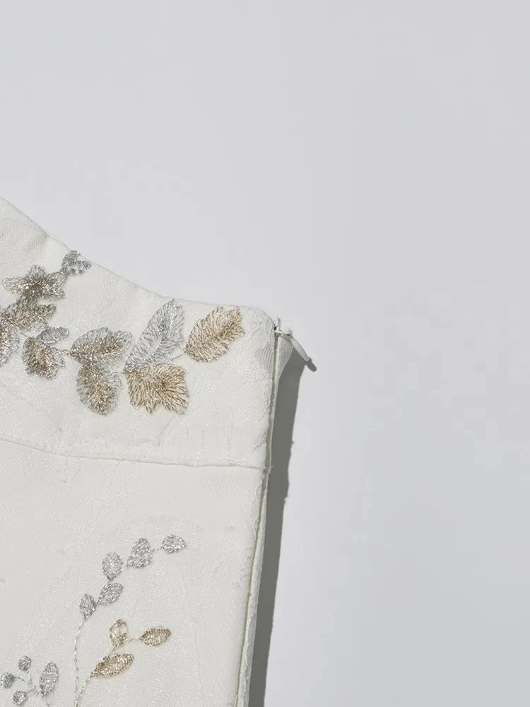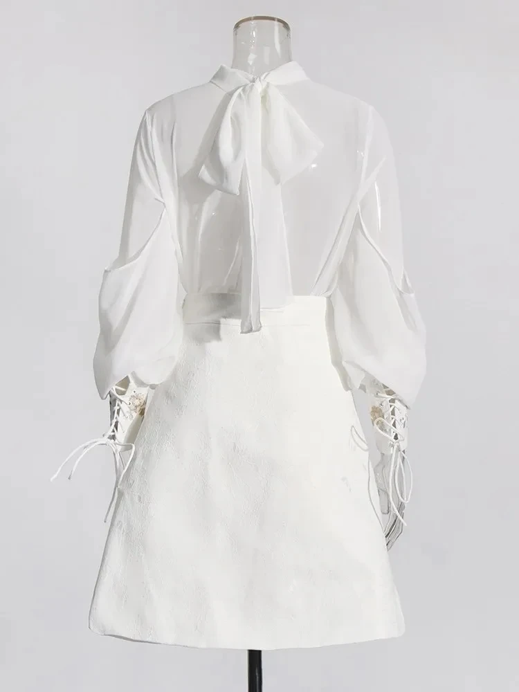 VGH Patchwork Embroidery Two Piece Set For Women Stand Collar Lantern Sleeve Tops High Waist Skirts Solid Sets Female Fashion