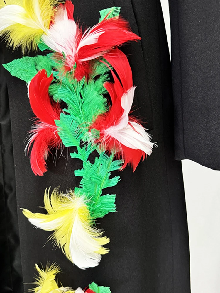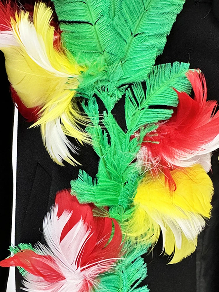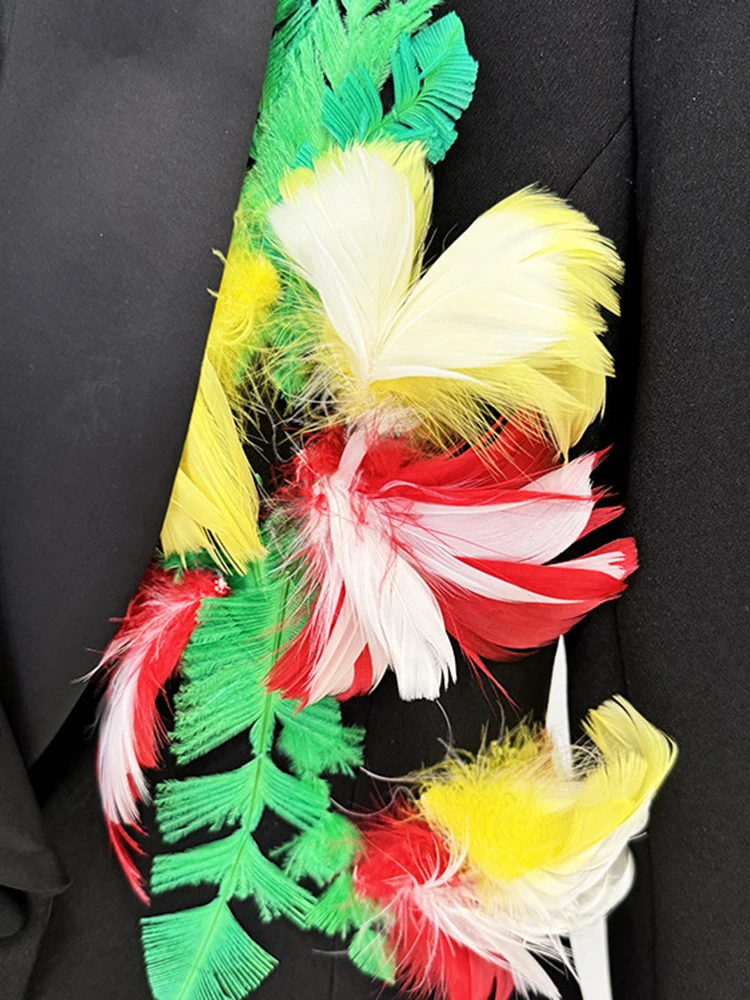 VGH Patchwork Feathers Casual Jackets For Women Lapel Long Sleeve High Waist Minimalist Slimming Coats Female Fashion Style New