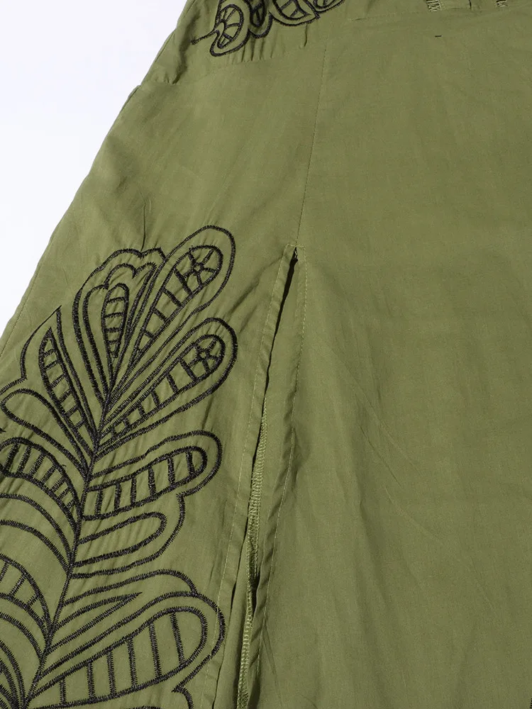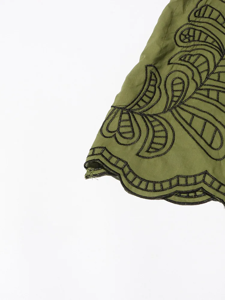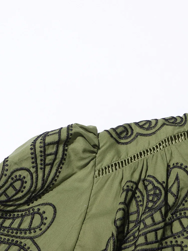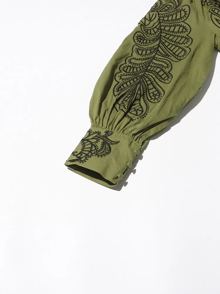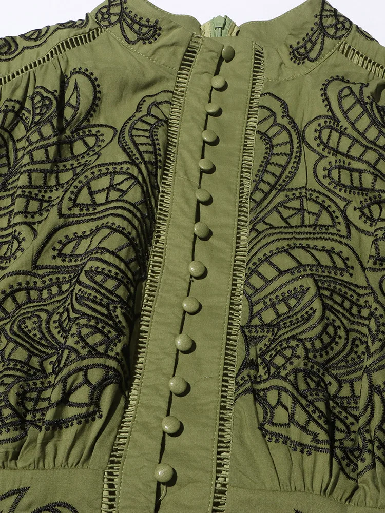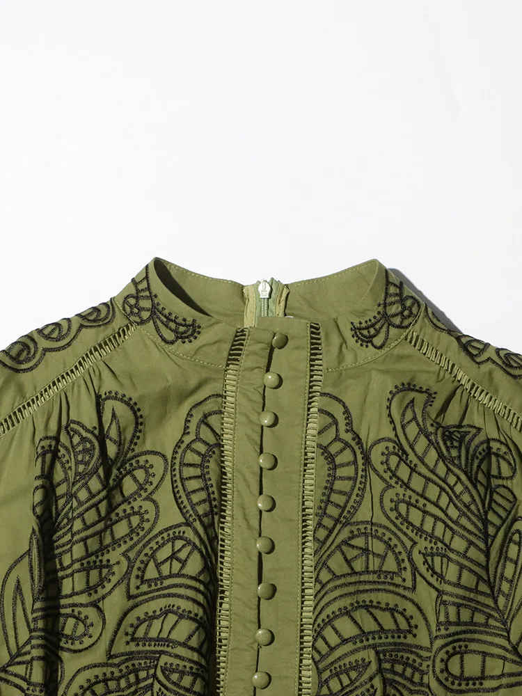 VGH Patchwork Single Breasted Split Dress For Women Stand Collar Long Sleeve Hollow Out Hit Color Long Dresses Female Fashion