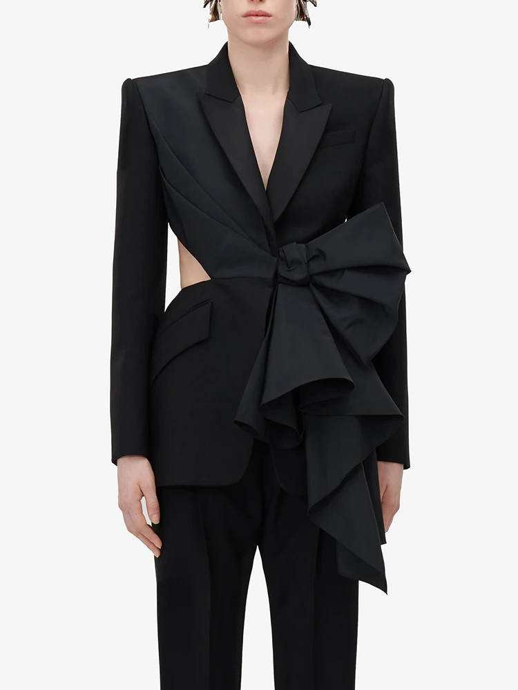 VGH Solid Patchwork Bowknot Hollow Out Blazer For Women Notched Collar Long Sleeve Tunic Temperament Slimming Blazers Female New